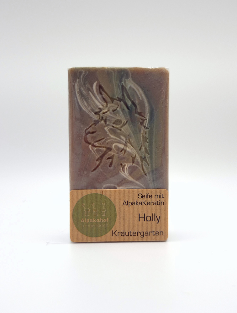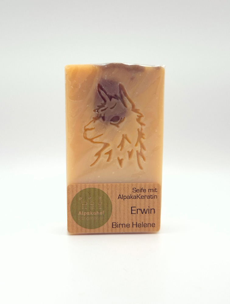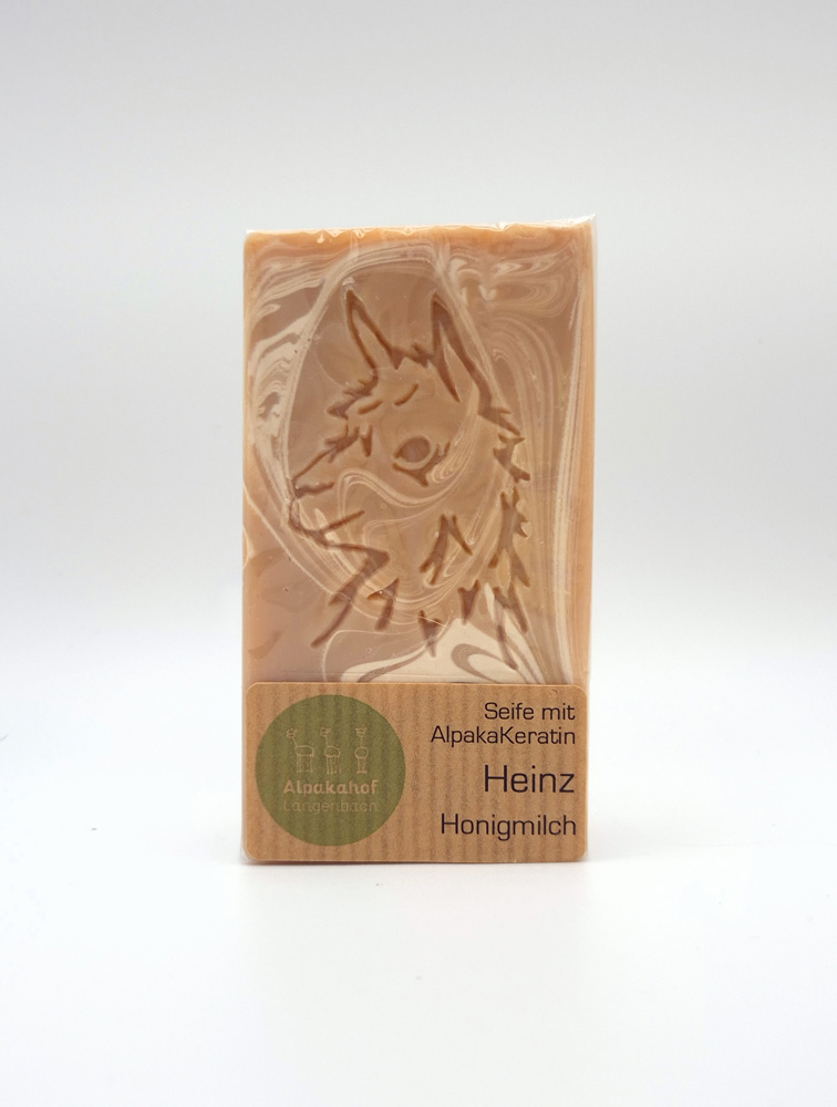 Seife aus Alpakakeratin- handgesiedet aus Alpakafasern und individualisiert für jedes Tier. Alpakaseife ist durch ihr Keratin besonders rückfettend, feuchtigkeitsspendend und regenerierend. Die Seife ist 100% natürlich und die Vliesfarbe jedes Tieres spiegelt sich in der Seife wider.